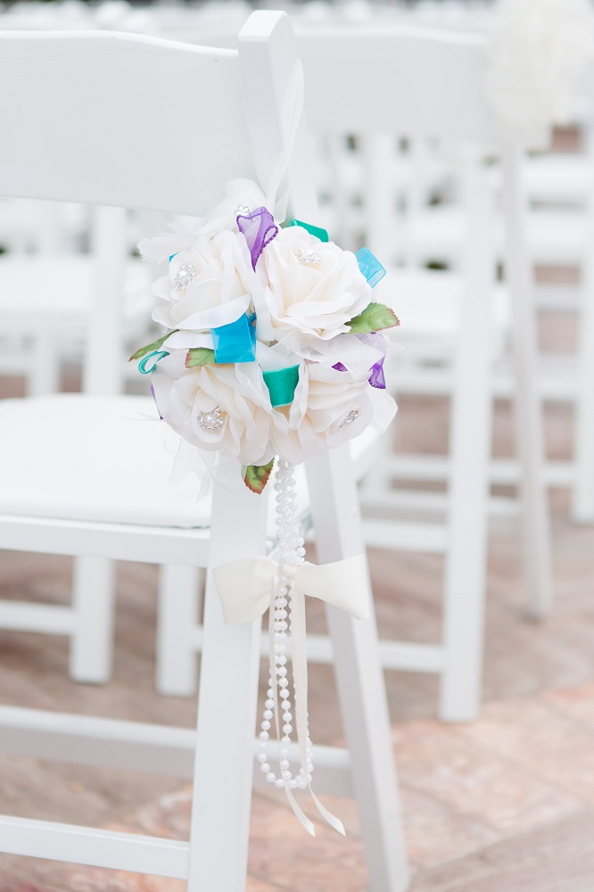Adriana and Matt married December 6, 2015. The couple both works for the police department and they chose a Disney theme for their wedding with the colors turquoise, green and purple. Fans and tissues were set out for their guests to use during the ceremony.