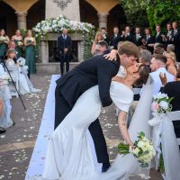 Emilia and Chris, who met at church, were married on May 24, 2025. Emilia looked lovely in a fit-and-flare satin gown with a deep V neckline, flutter sleeves, plunging back, and button detail down the back of the dress. Her accessories included cluster earrings, a crystal necklace, and a full-length veil. Her bouquet was composed… Read more »