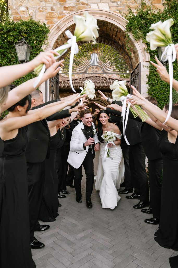 The couple embraced a chic, classic aesthetic, asking guests to dress in black to complement the sophisticated theme. The result was a striking and cohesive atmosphere that felt both modern and elegant.