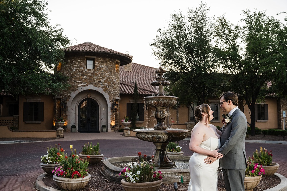 James wore a gray suit with a white shirt, gray tie, and mini bouquet boutonniere. His two groomsmen wore black suits with white shirts, burgundy ties, and mini bouquet boutonnieres.