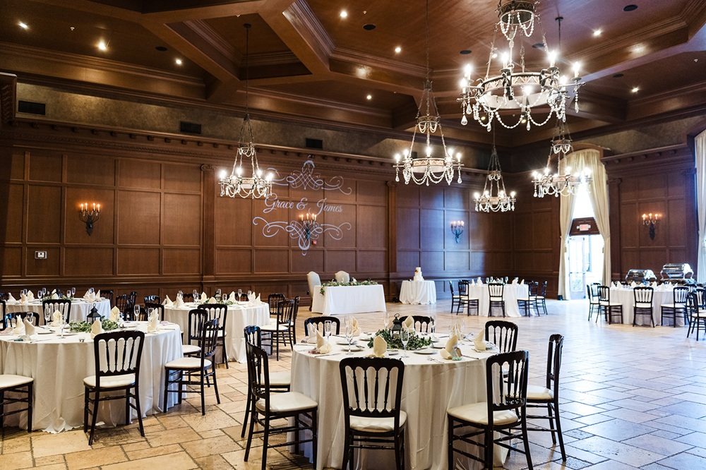 After an outdoor ceremony, attendees enjoyed a meal of spring-mix salad with strawberries, apples, grapes, and feta cheese; twice-baked potatoes; tortellini primavera; grilled Atlantic salmon; and grilled chicken breast. The signature cocktails were an old-fashioned for James and a Blue Hawaiian for Grace.