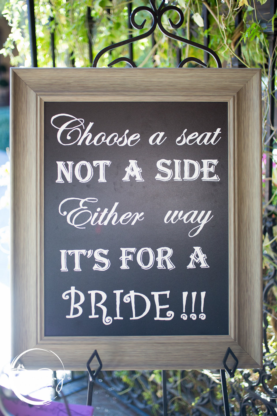 Guests of Kristi and Molly’s processional were met with a sign reading, “Choose a seat not a side, either way it’s for a bride!!!” Molly’s brother-in-law was the officiant, and the couple performed the sand ceremony.