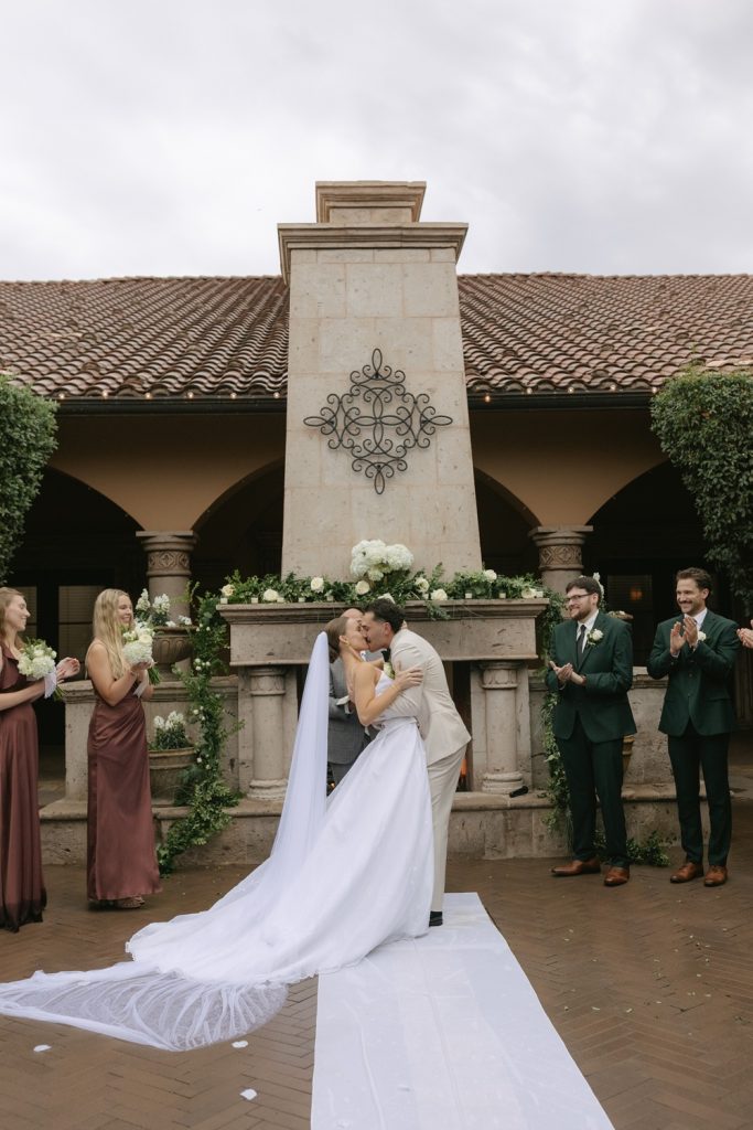 Quinn and Asa were married on October 9, 2025, in a romantic outdoor ceremony at Villa Siena that felt both elegant and deeply meaningful. Surrounded by white and cream florals—lush hydrangeas and classic roses accented with soft gold touches—the setting perfectly reflected the timeless love story they’ve been writing since meeting years ago at a church youth group.